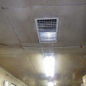 空調機新設にあたり照明の移設等を行い、無事綺麗に設置致しました。